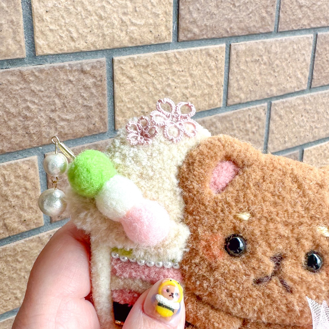 モコモコの部分は接着剤で固定してありますが強く糸を引っ張るとほつれたり型崩れの原因になります。