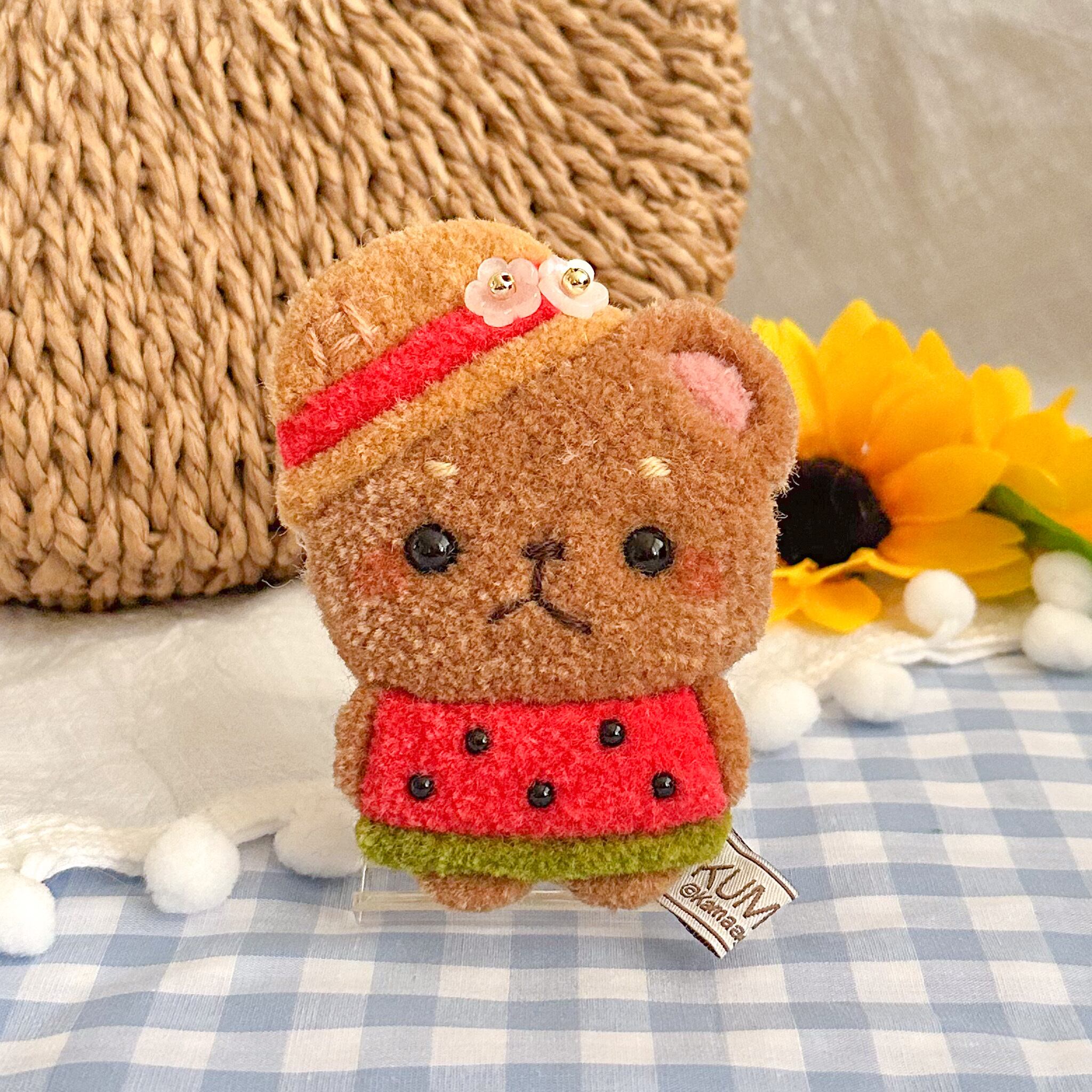 麦わら帽子とスイカのお洋服が可愛いくまちゃんのキーホルダーです♪