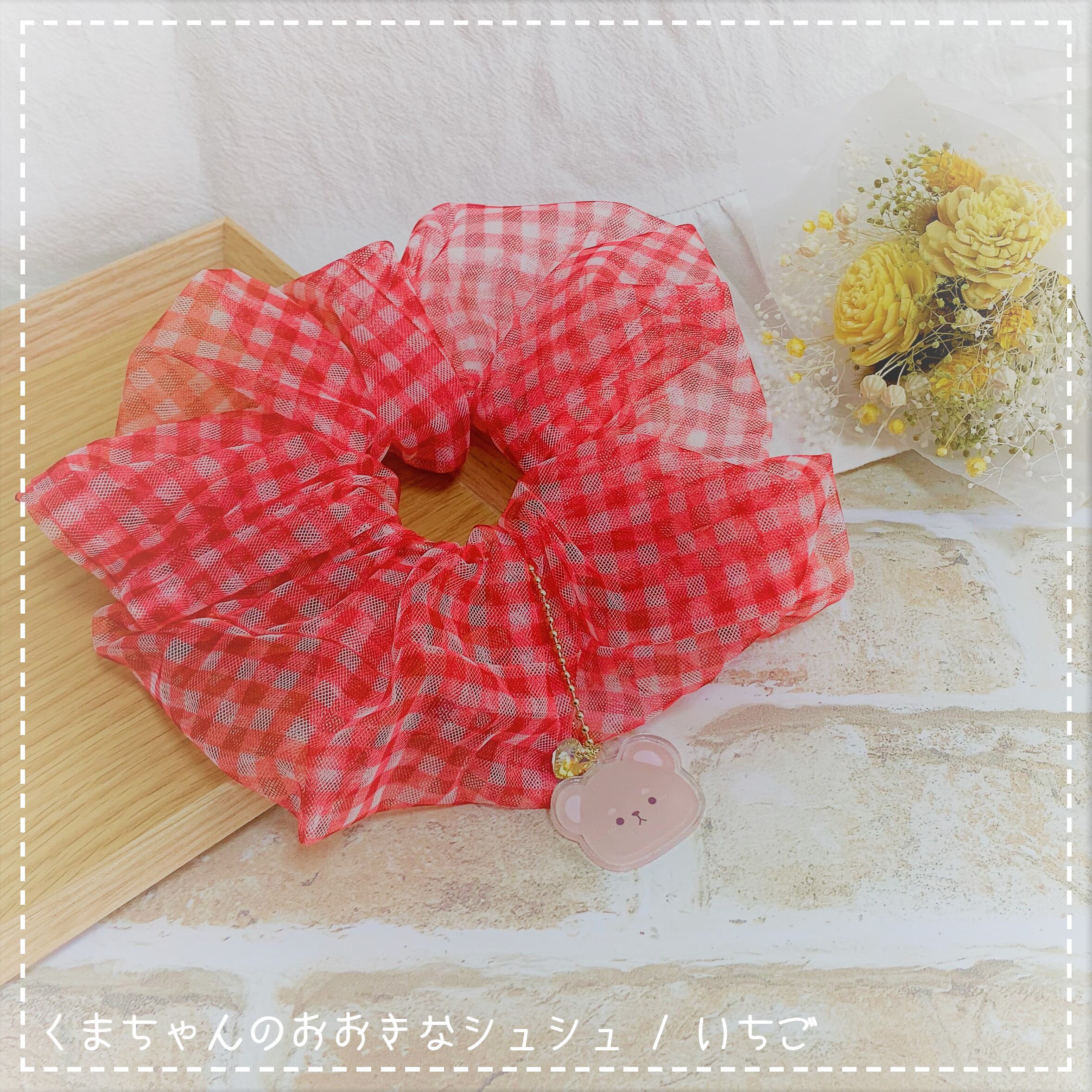 かわいいギンガムチェック×透け感のあるオーガンジー生地の大きなシュシュに